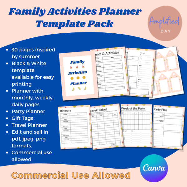 Grab this template pack that includes a planner to schedule family activities for ONLY $9.90.
